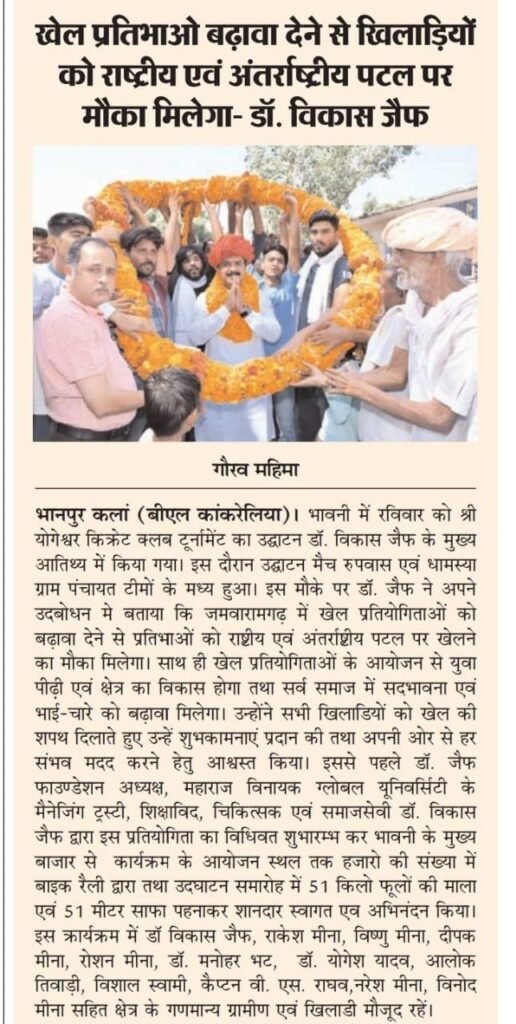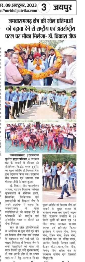 जमवारामगढ़ क्षेत्र की खेल प्रतिभाओ बढ़ावा देने से खिलाड़ियों को राष्ट्रीय एवं अंतर्राष्ट्रीय पटल पर मौका मिलेगा- डॉ. विकास जैफ